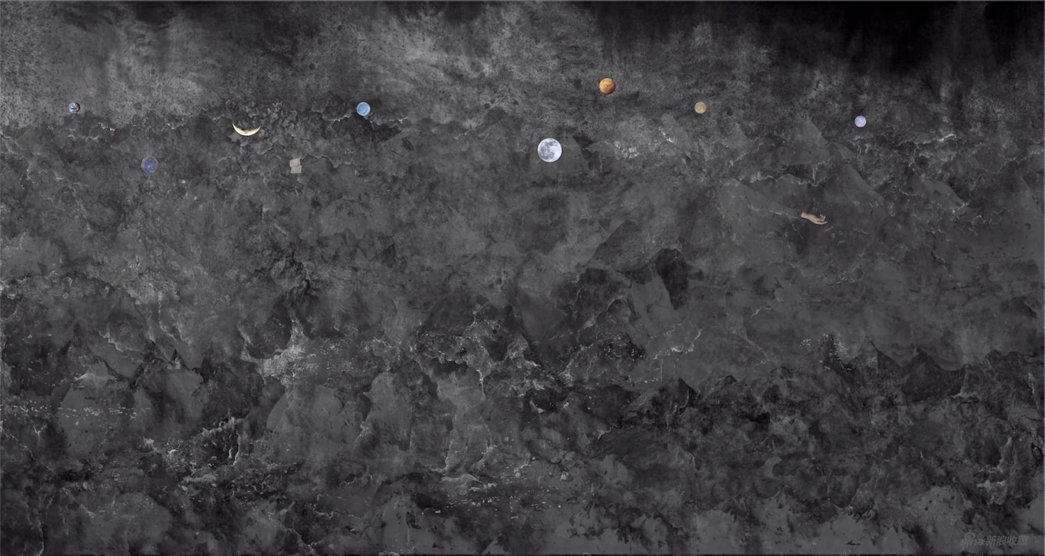 此次展览包含15件影像、4件动画、9件摄影、11件绘画、1件装置、1件声音、109件手稿,大部分为近两年的新作。在展厅中,我们穿过三段狭长的通道,经由5个角色,一路走到“黄河”,完成一个文明原型的想象与建构;进而回到“人间”,一片由草木铺陈的世界,生机勃勃却朝生暮死;与此相接的是对有涯之生的超越,走入一个时空都尚且在孕育的“子宫”,置身于混沌、深渊和纯粹的运动之中;最终是“铸浪为山”,来到一片山海和海山,以“十亿年的浪花”的时间尺度透视着影影绰绰的草木,透视着百年的人间。剧终后的余响是手稿厅,艺术家的脑海。